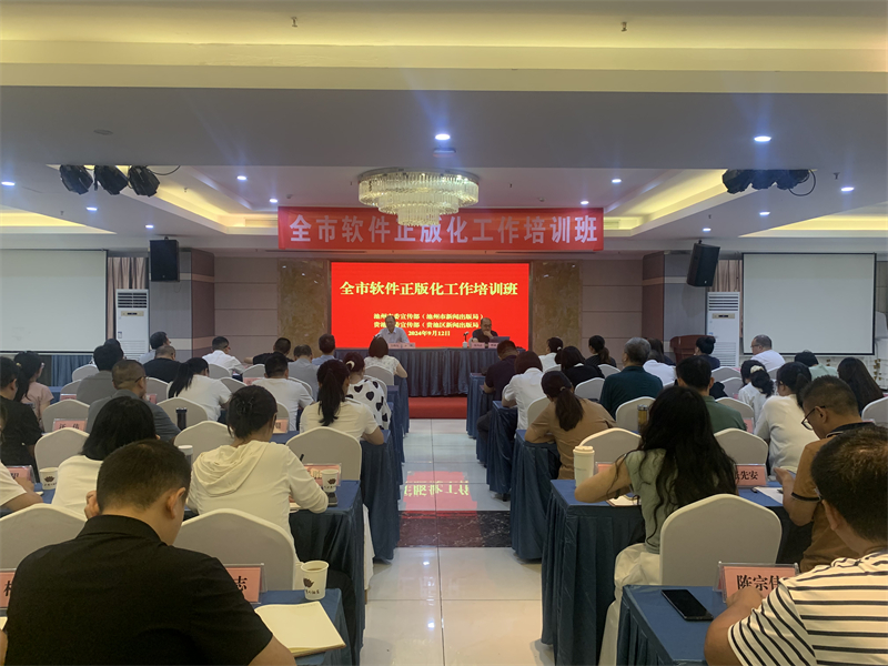 为贯彻落实省软件正版化工作联席会议关于推进使用正版软件工作部署,切实提高我市软件正版化工作管理水平,9月12日,池州市委宣传部、贵池区委宣传部联合举办2024年软件正版化工作培训班。市财政局(国资委)、卫健委、教体工委分管领导,各县区委宣传部分管领导和业务科室负责人,各县区财政局(国资委)、卫健委、教体工委业务科室负责人,市、县级公立医院、市、县属国有企业分管领导和相关科室负责人等80余人参加培训。