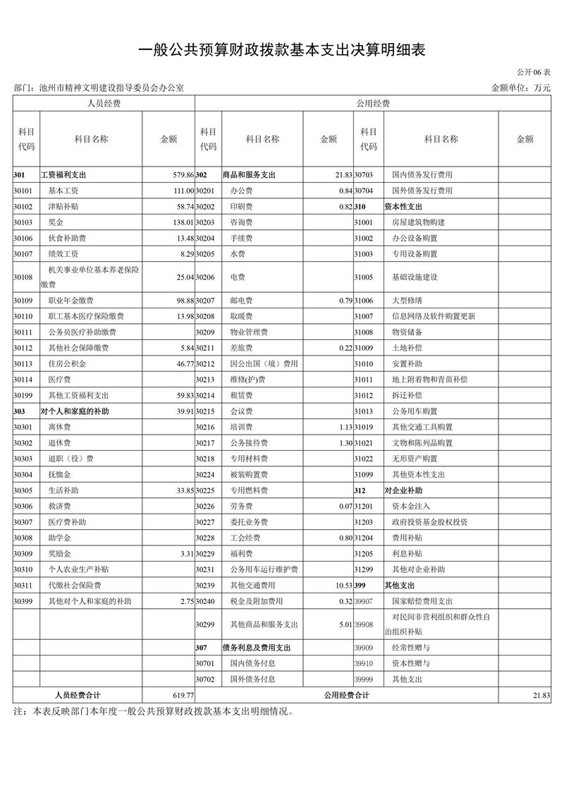 池州市精神文明建设指导委员会办公室2022年度部门决算