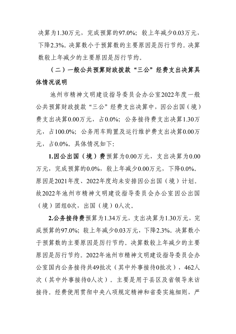 池州市文明办2022年度一般公共预算财政拨款“三公”经费支出决算