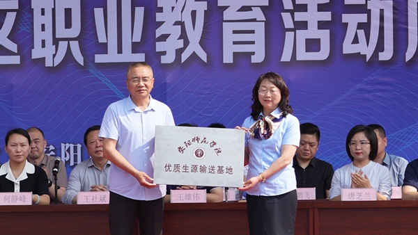 仪式上,对口升学高校代表为理工中专授予“优质生源输送基地”牌匾。理工中专成为河南科技学院、安阳师范学院优质生源输送基地,为让更多学生升入高校创造了良好条件。