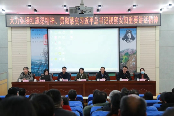 为深入学习宣传贯彻党的二十大精神、习近平总书记视察安阳重要讲话精神,大力弘扬红旗渠精神和劳模精神劳动精神工匠精神,2月16日,2023年安阳市学习宣传贯彻党的二十大精神暨劳模工匠、红旗渠精神进校园活动启动仪式在安阳市第三十二中学召开。市教科文卫体工会主席刘国锋主持会议,市总工会党组成员、女职工委员会主任张爱敏出席会议并讲话。市总工会宣教部部长蔡文波,市三十二中学党支部书记、校长付彤方,各学校工会主席,三十二中学教职工和学生代表参加会议。