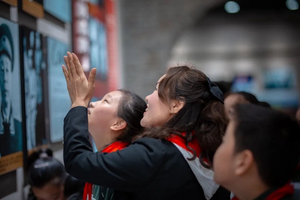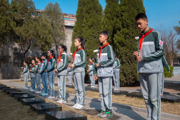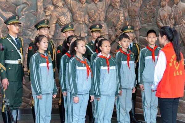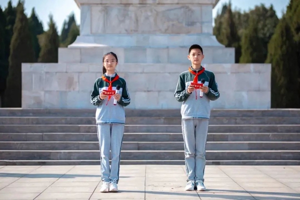 共同参观纪念馆,安阳职业技术学院志愿者进行讲解。一幅幅画面,一张张照片讲述了一个又一个可歌可泣的英雄故事。少先队员们仔细聆听着志愿讲解员的讲述,心潮澎湃。志愿者的讲解,让少先队员们既了解了苦难辉煌的历史,又坚定了爱党、爱国、爱社会主义的理想信念。队员们纷纷表示:回到自己的中队,也要像志愿讲解的哥哥姐姐们一样,担当起“红领巾讲解员”的职责,将自己参观烈士陵园的所见、所感、所悟,分享给中队其他队员,让红色基因、革命薪火代代传承。