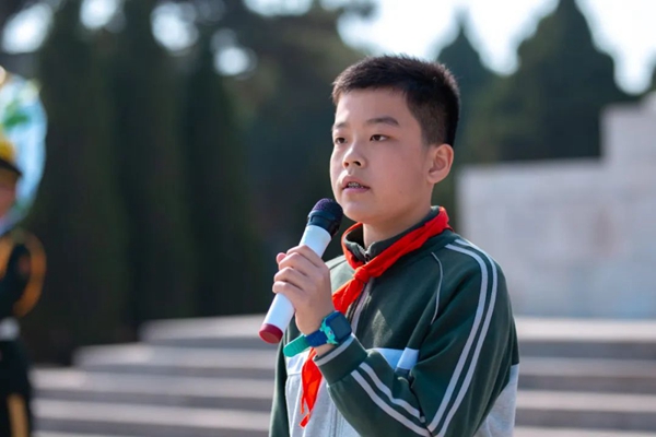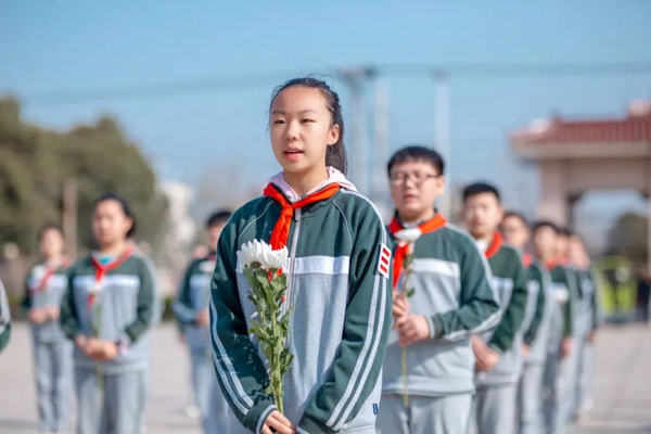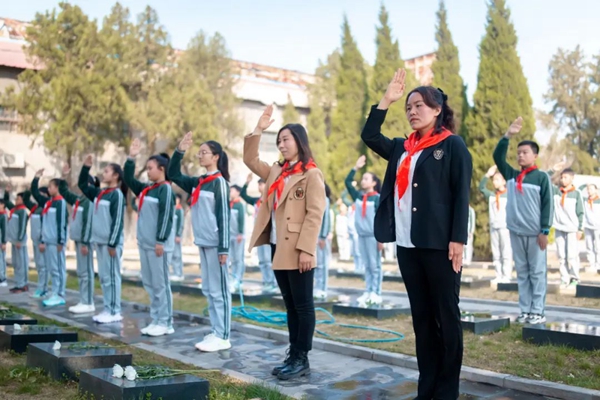 少年强则国强,少年独立则国独立,以团带队心向党,同心共筑中国梦。通过此次“团带队”清明节祭扫活动,我们就是要小手拉大手,进一步加强团、队衔接工作,增强团组织的凝聚力和号召力,巩固少先队阵地建设,使红色教育在团与队之间顺利衔接。爱党爱国的红色种子正在青少年心中生根发芽,作为新时代的少先队员,要继承革命先烈们的遗志,发扬先烈的革命精神,珍惜美好时光,勤奋学习,为中华民族伟大复兴梦贡献自己的一份力量!