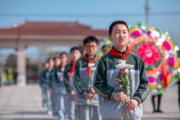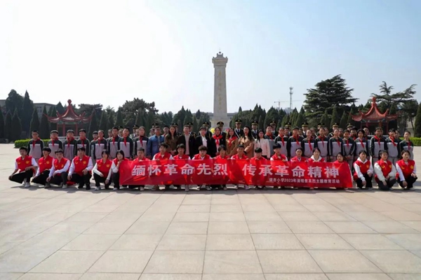 瞻仰纪念碑,向烈士敬献鲜花并哀悼致意。鲜花献英烈,哀思祭忠魂。朵朵白花,象征着革命先烈崇高的品质和无私的精神;朵朵白花,寄托着我们对革命先烈的深深的哀思和无限的敬仰。