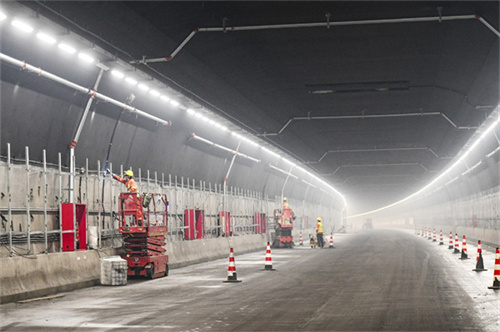 昨天上午,记者来到了东六环改造工程的施工现场。隧道北出口,一条宽敞平坦的道路一路向下延伸,扎进了隧道内。