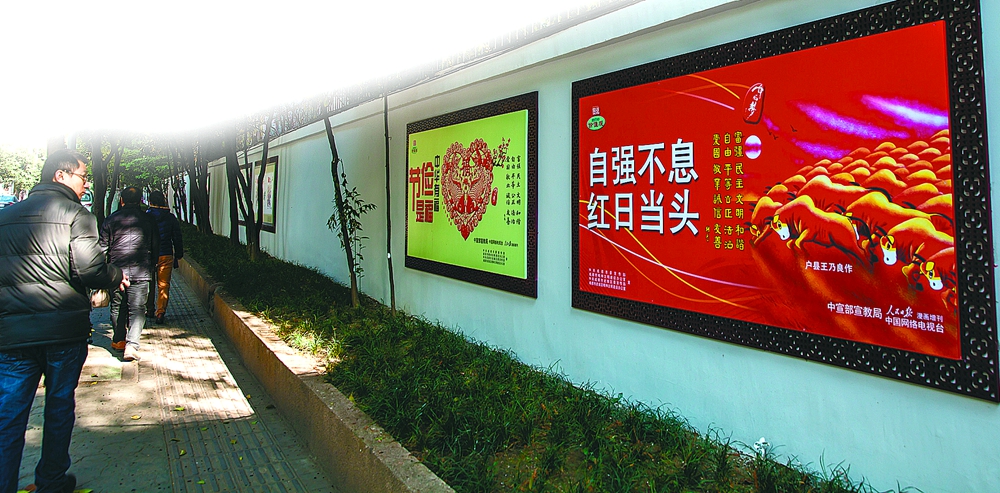 ● 武侯区玉林街展出50幅公益广告,墙体长约400米