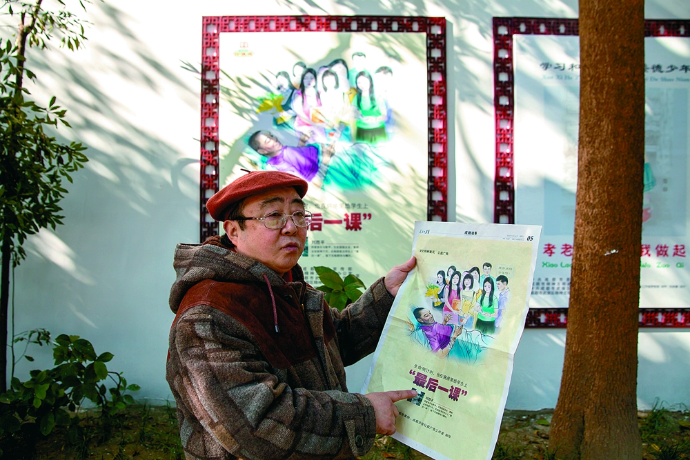 刘光灿打开捏在手中已久的《人民日报》,来自成都的“最后一课”公益广告占据报纸整版,将这份向上向善的正能量传播得更广。