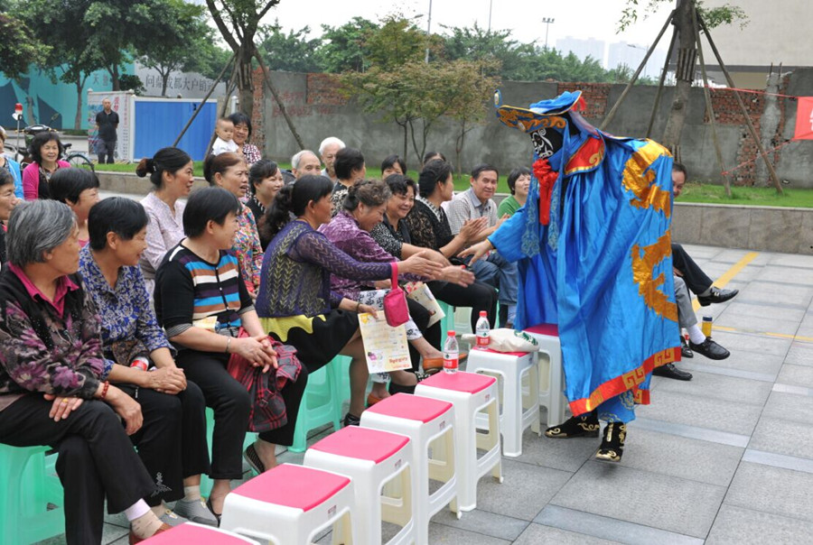 为迎接中秋佳节和国庆节的到来,营造良好的beplay官网app 过节氛围,2015年9月23日上午,锦江区双桂路街道办事处在汇泉南路明法beplay官网app 广场开展“庆中秋·迎国庆”beplay官网app 广场惠民活动。本次活动邀请到来自川剧团的演员们为辖区居民带来一场“传统”+“现代”表演的视觉beplay官网app 盛宴,辖区100余位居民参与了此次活动。川剧团演员们为辖区居民表演了变脸、吐火等等传统川剧节目及《猪八戒背媳妇》、《中江表妹》等现代谐剧等节目,现场观众被逗得捧腹大笑,爆发出阵阵掌声。通过这些大众喜闻乐见的节目,丰富了辖区居民的beplay官网app 生活,营造了良好的欢庆中秋、喜迎国庆的氛围。 (来源:锦江区文明办)