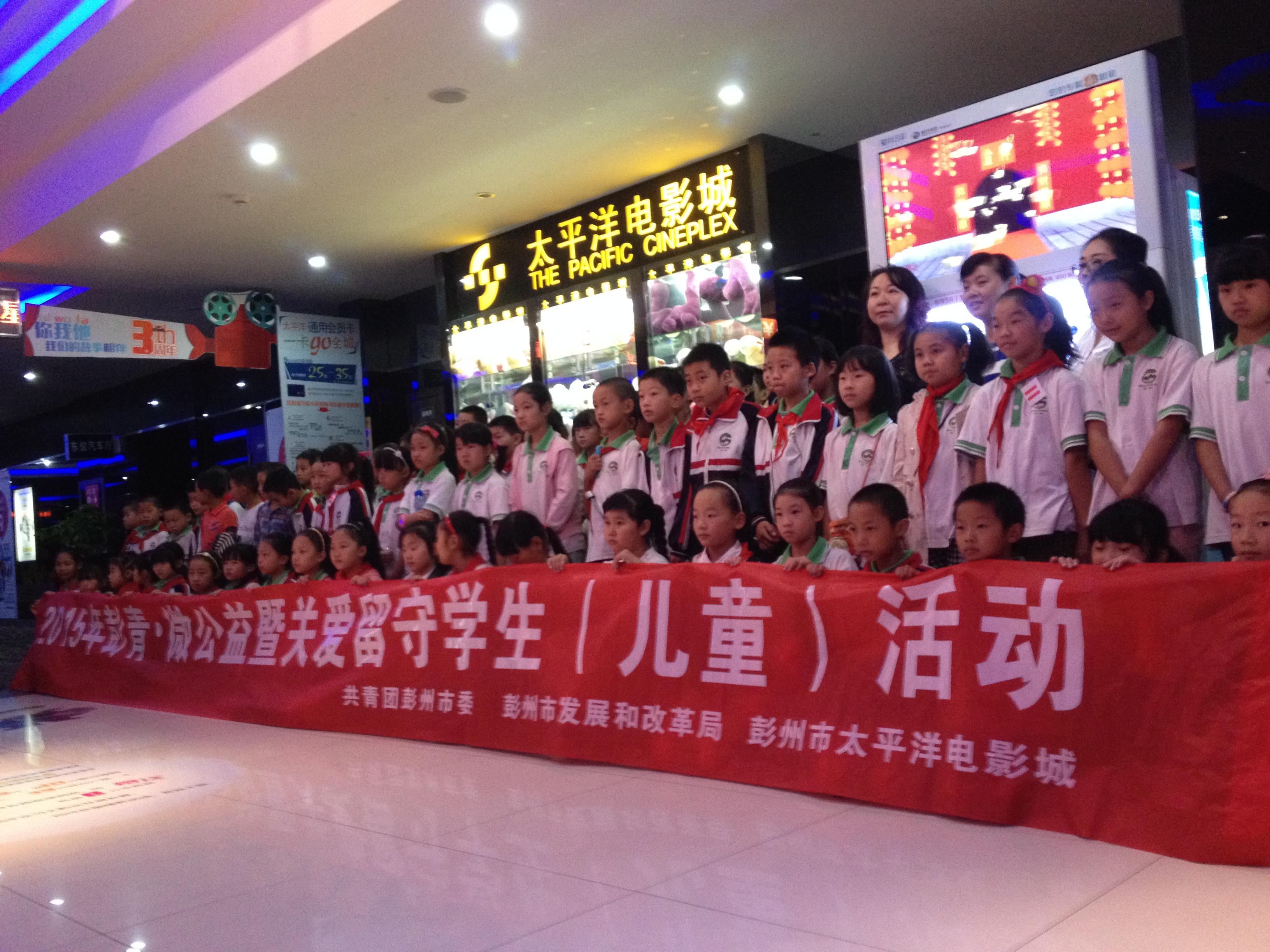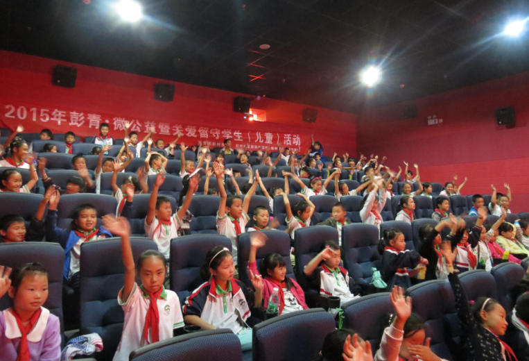 9月16日,2015年彭青·微公益暨关爱留守学生儿童活动在太平洋电影城顺利开展,彭州市葛仙山镇九年制小学100余留守儿童参加了本次活动。