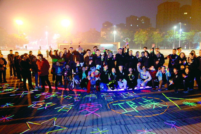 “流萤”飞舞 原是志愿者夜跑倡导文明