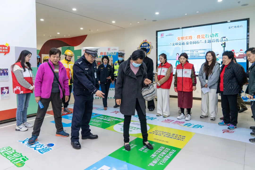 “摩托车可以搭载几名乘客?”“儿童乘车时是否需要专门的儿童安全座椅?”“非机动车在道路上行驶时,应该遵守哪些规则?”在武侯区新时代文明实践中心开展的“文明交通 安全同行”主题宣传活动现场,交警寓教于乐,化身“文明交通”飞行棋游戏指引员,在游戏中为人们科普日常生活中容易被忽略的交通安全问题。活动最后,来自中国邮政、顺丰速递、美团、饿了么等快递外卖代表联合发起文明交通倡议。