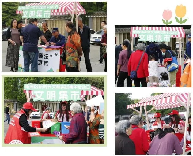 武侯区新时代文明实践中心联合望江路街道新时代文明实践所、老马路社区新时代文明实践站,在乐邻里小广场开展“文明协奏曲”公益集市活动。集市现场设有绿色环保宣传展板,志愿者们通过视频播放、互动问答等多种形式向居民们详细介绍了垃圾分类的重要性、分类标准以及具体操作方法。