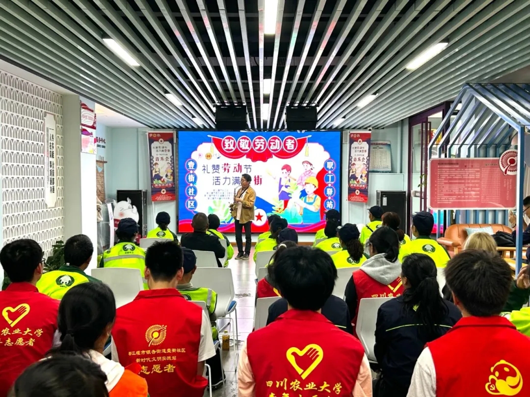 用音乐向劳动者致敬。在都江堰市银杏街道壹街区新时代文明实践站,伴随着悠扬的萨克斯旋律,一场“五一”劳动节小型音乐会拉开序幕。随后,独唱、唢呐独奏、电吹管独奏、葫芦丝独奏等精彩节目接连上演,人们用音乐表达对劳动者创造美好生活的赞美。