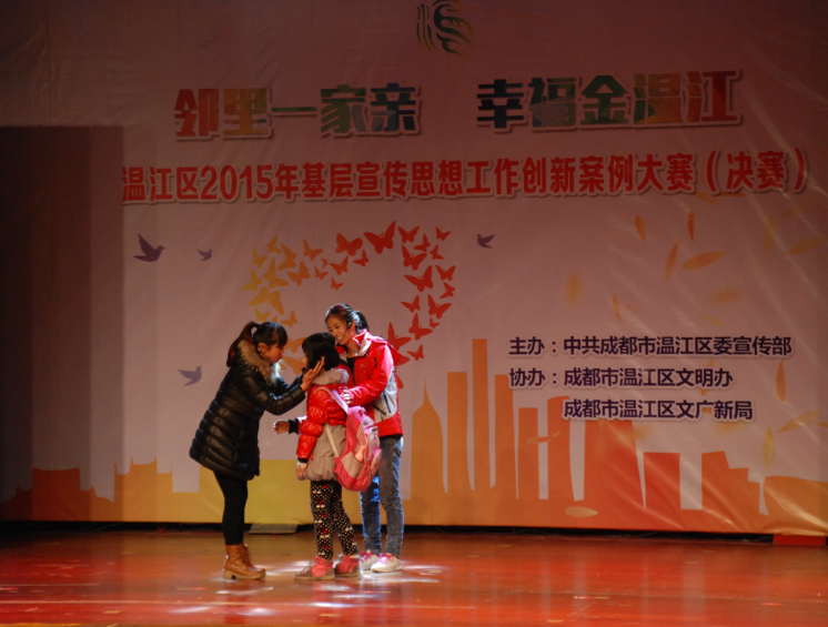舞台上跳起坝坝舞、和留学生一起演小品、邻里合照展示。12月18日,由温江区委宣传部主办的“‘邻里一家亲·幸福金温江’2015年基层宣传思想工作创新案例大赛”决赛在温江青少年活动中心举行。