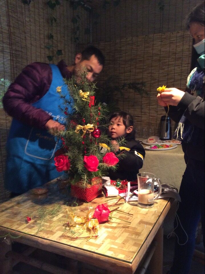 在活动中,心灵手巧的棕编老师介绍了圣诞树的制作过程,经过老师的巧手,零散的材料逐渐演变成了一棵美丽的圣诞树。在老师的指导下,参与活动的儿童和家长齐动手、共创作,发挥自身的想像力,热情洋溢地开始亲手制作,大点的孩子动作很快,小龄的孩子也不甘示弱,站到凳子上用他们稚嫩的小手亲手创作。在父母与孩子的共同努力下,一盆盆美丽的圣诞树被制作了出来。最后,现场的老师、家长和孩子对21组作品进行了现场打分,评选出了最美丽的圣诞树,并与孩子们进行了亲密的合影留念。