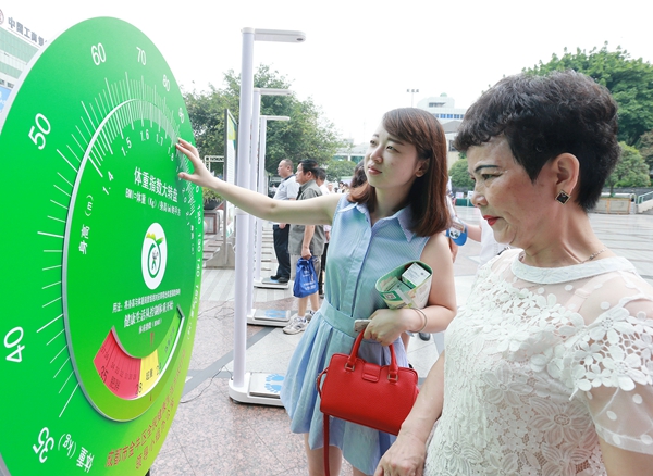 市民测量体重、身高