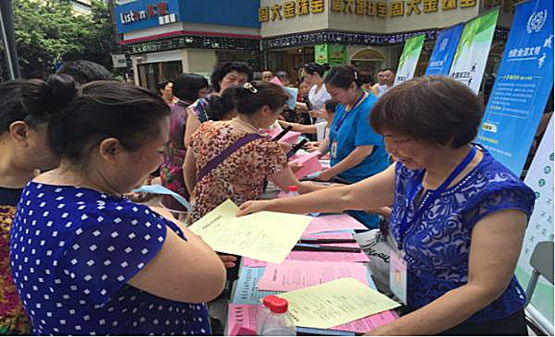 志愿者向市民发放宣传资料