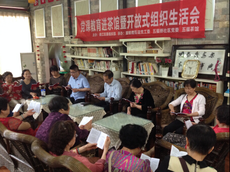 5月4日,五福桥社区党委组织第一支部党员30余人在“五福茶馆”围绕“两学一做”专题一开展“学习党章,不忘初心”主题党课活动。通过此次活动,迅速在全体党员中掀起“两学一做”的学习热潮。