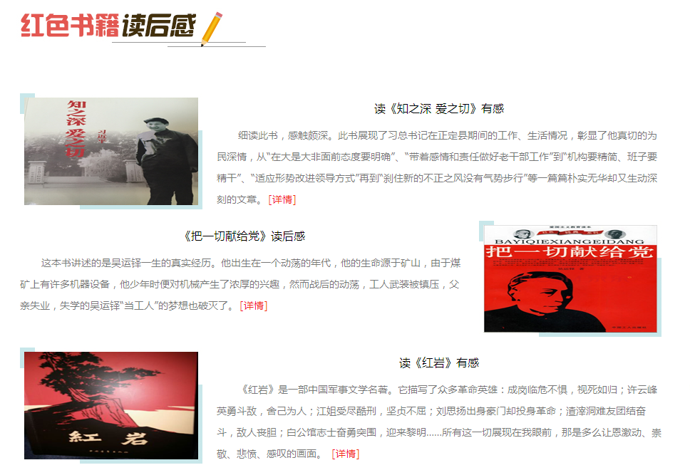 活动期间,不少网友还向我们推荐了《把一切献给党》、《周恩来传》、《红岩》等红色书籍,有网友在读后感中写到:“读到他们的事迹,我无法自已,在他们面前,我感到深深的愧疚。想起自己在工作中遇到不顺心的事或小挫折,便想到放弃。没有对工作完全充满热情的我易被摧垮,总找借口说自己是个女孩。可如今,在红岩英雄的光辉形象前,我明白了:越是在铺满荆棘的路上,就越需要我们去开拓;越是困难的时候,就越需要坚定不移的精神去克服。”