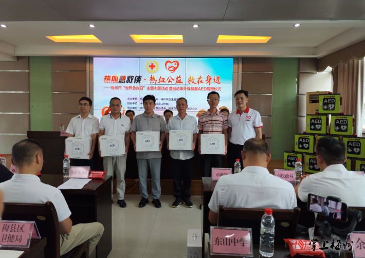 9月14日是第25个“世界急救日”。9月13日下午,我市在市医科大楼举行梅州市“世界急救日”关爱生命救在身边主题志愿活动暨自动体外除颤器AED捐赠仪式,相关单位代表及市卫健系统职工约 50 人参加了活动。