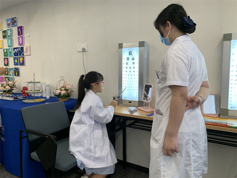 为提升未成年人用眼、护眼知识,减少“小眼镜”出现,8月11日,市未保中心联合香洲区慈善会、珠海爱尔眼科,精心组织了“呵护明眸、预防近视”眼科小医生职业体验活动,共20组亲子家庭参加。活动现场,孩子们穿上象征医生的白大褂,切身体验眼科医生职业,兴奋之情溢于言表。在专业医护人员的带领下,通过科普讲堂,孩子们深入了解了眼睛的奥秘,认识了近视形成的原因以及预防措施。在随后的有奖知识问答环节中,孩子们踊跃参与,有效巩固了所学护眼知识。珠海爱尔眼科为参加活动的儿童提供两项免费视力检查,帮助儿童了解自己的视力状况,加强未成年人近视预防工作。
