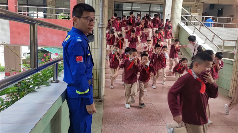 “发生险情时,第一要务就是要保持冷静,有序快速撤离。”“发生火灾,如果身边没有找到湿毛巾,应该用手还是使用身上的衣物来遮挡口鼻?”演练开始前,专业救援人员首先通过香洲二小“云”课堂,为全校师生宣讲安全知识。在场师生认真聆听,牢记安全疏散要点。