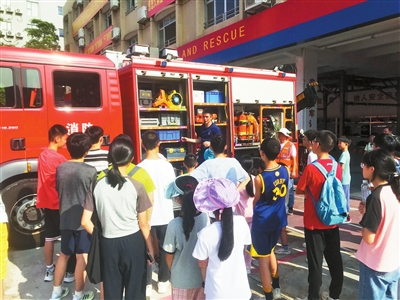为增强青少年消防安全意识,提高应急避险能力,8月24日下午,香洲区梅华街道敬业社区联合珠海市蓝海社会服务中心,组织社区“普法少年团”走进人民东路消防救援站,开展“青春火焰蓝,消防安全行”暑期研学活动,沉浸式体验学习消防安全知识。