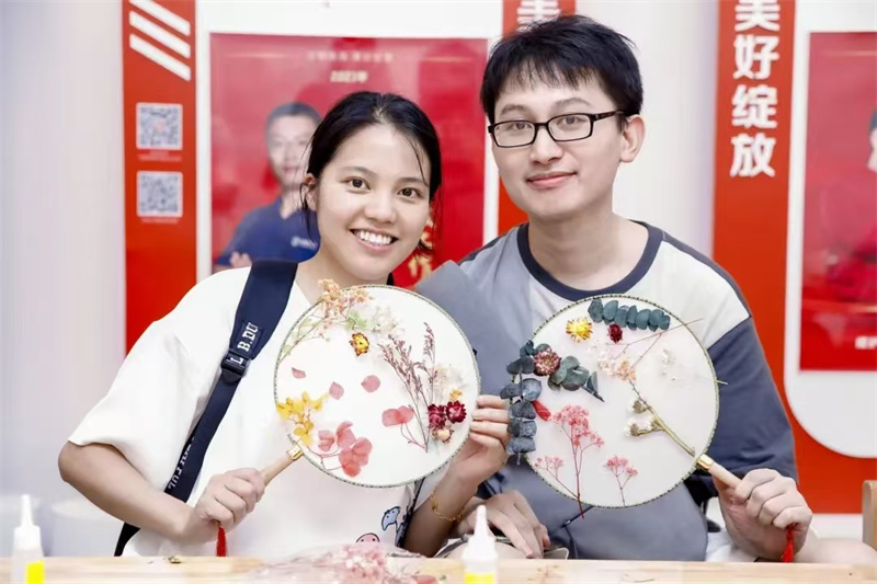 此外,手工制作环节也备受欢迎,市民们在干花团扇摊位感受传统手工艺的魅力;在美甲摊位用花朵贴片进行 DIY 制作,体验以花为主题的美甲艺术。还可以带着自己亲手完成的作品,在合影区留下美好瞬间,记录下永久的回忆。