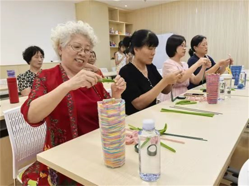 8月9日,南屏镇永济社区在社区新时代文明实践站开展“银龄巧手 绽放如花”扭扭棒花束DIY活动。