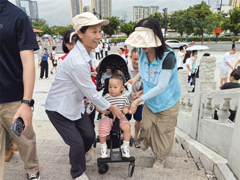 8月31日,珠海中医药一条街(西街)开园迎客当天,园明社区再次组织党员和青年志愿者,在圆明新园广场附近开展秩序维护和文明引导等志愿服务。