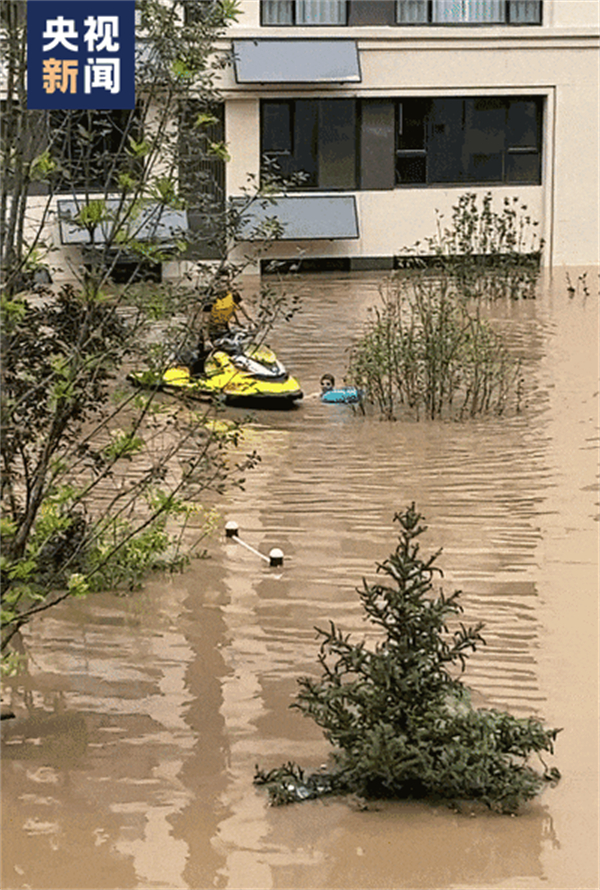 之后救援艇陆续进入小区