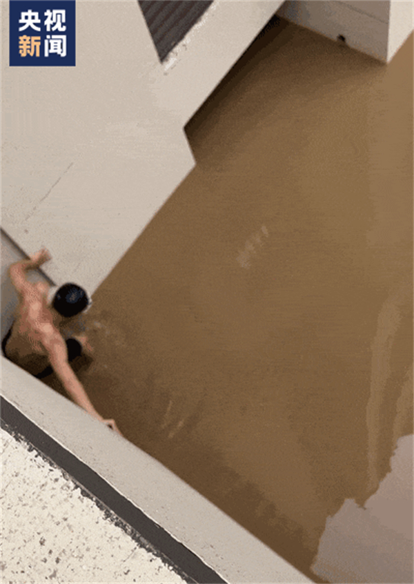 一男子从2楼家中跳入洪水中