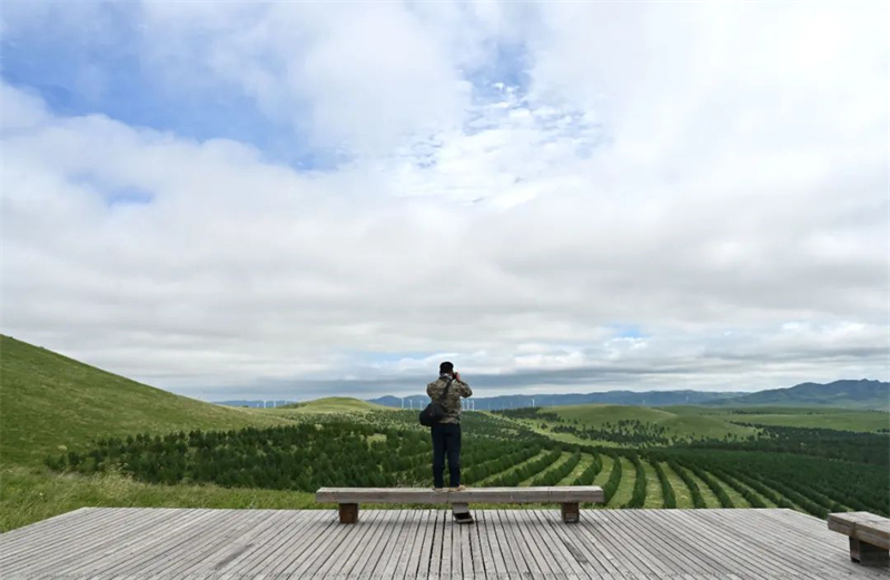 白巴嘎那在内蒙古扎鲁特旗罕山国家级自然保护区内拍照。图片来源:新华社