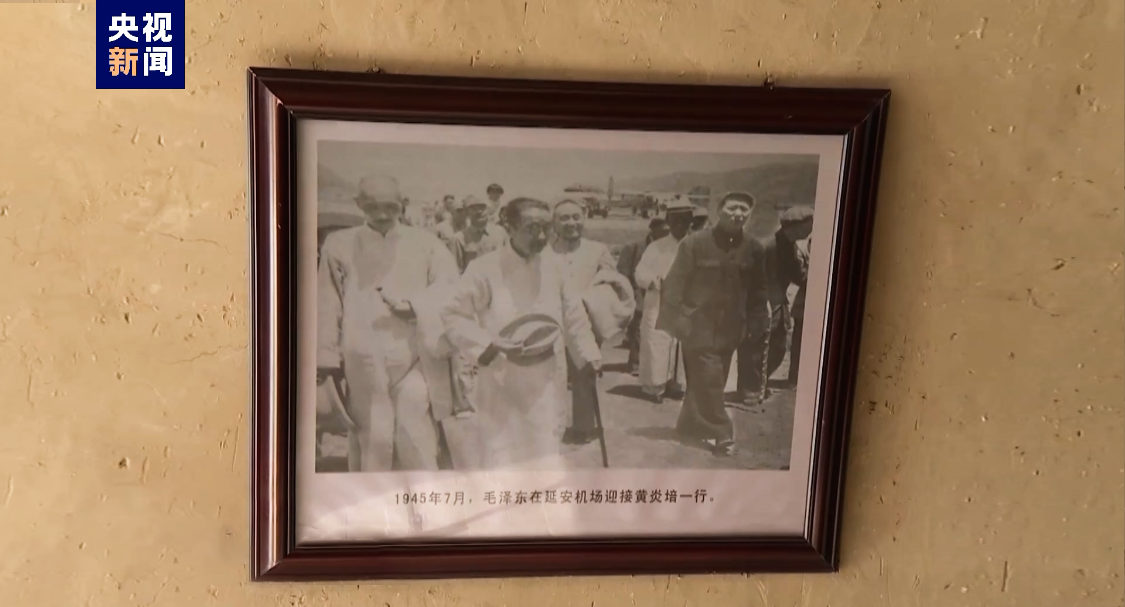 一张泛黄的照片,记录了1945年7月初毛泽东同志到机场迎接前来考察的黄炎培一行时的情景。