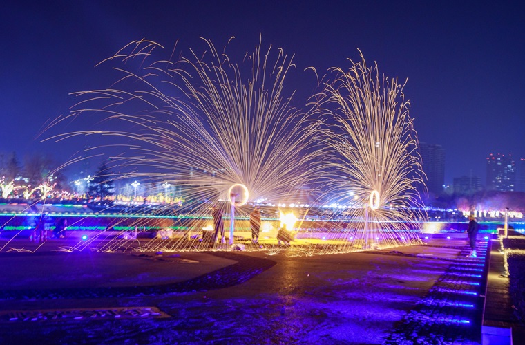 非遗表演打铁花。