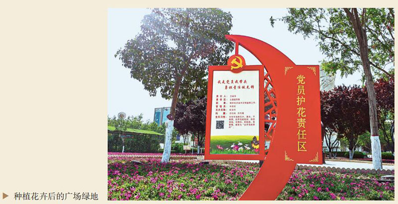 2.明确护绿责任,引领群众弘扬文明新风。广场充分发挥党建的引领作用,实施护花行动,设立了党员护花责任牌,明确每一位党员的护花区域和护花任务,通过党员的示范引领作用,教育引导群众爱绿护绿,弘扬文明新风,争做文明市民。