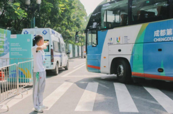 当天,李邦辉的主要任务是在大运村到城北体育馆的往返线路上,为运动员、代表团官员提供上下车和跟车陪同服务等。