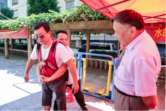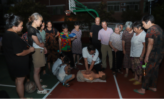 志愿者向居民展示应急救援操作方式。