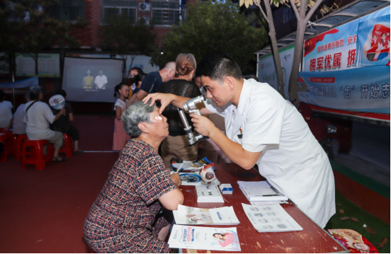 志愿服务夜市上,专业眼科医生为居民做眼部检查。