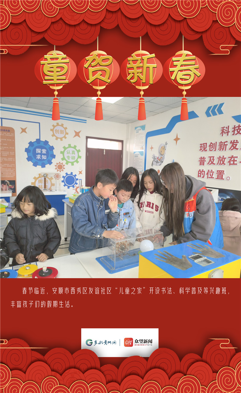 为展现贵州各地少年儿童丰富的假期生活,各地依托新时代文明实践中心(所、站)组织儿童开展形式多样的文明实践活动,开展“童贺新春”主题网络文明传播活动。