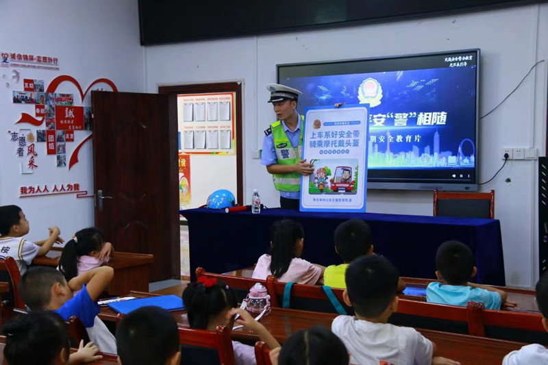 在暑期安全小课堂上,交通警察、消防员、普法宣传员等专业人员以及志愿者,依托文明实践中心、所、站阵地开展“文明实践 快乐暑假”夏令营活动,围绕防溺水安全、防拐防骗相关知识、家庭安全隐患、安全上网、用电安全、交通安全等内容,为青少年带去了暑期安全第一课。