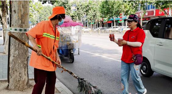 “注意休息”“要多喝水”“记得注意安全”……工作人员一大早将绿豆清洗干净并熬制了两个多小时,晾凉分装,一一送到交通警察、快递员、外卖小哥、环卫工等户外劳动者手中,并致以真诚的感谢,嘱咐他们在高温下工作务必要注意做好防暑降温措施,确保自身的健康和安全。