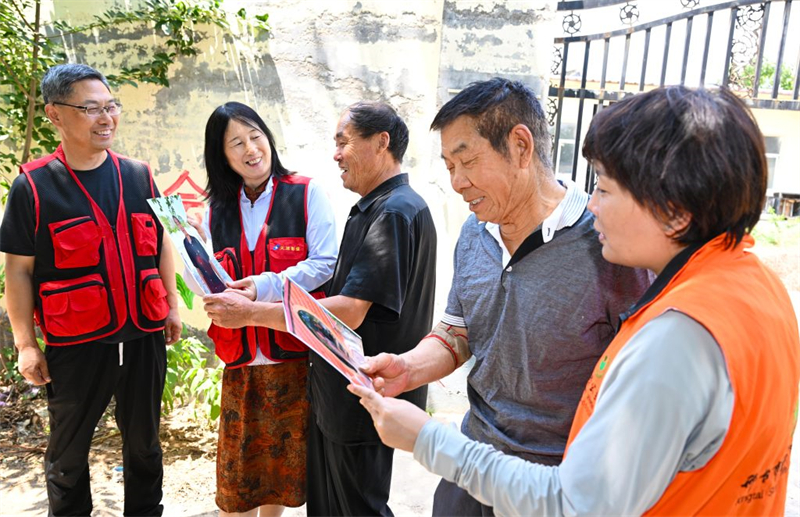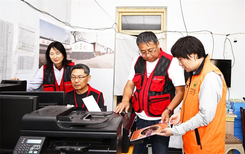 6月28日,临城县摄影家协会会员在为西渎村老党员打印照片。