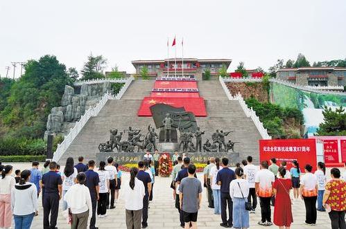 7月7日9时,位于邢台市信都区的抗大陈列馆与全国抗战类纪念馆同步开展了纪念全民族抗战爆发87周年活动。上百名党员干部、学生和群众代表在抗大陈列馆广场,与抗大陈列馆全体工作人员一起唱国歌和抗大校歌,向抗大群雕敬献花篮。