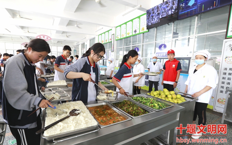 宝丰中学在校学生有2046人,是竹山县规模最大的农村寄宿制初级中学。该校牢牢守护学生舌尖上的安全,从食材采购、配送、验收、制作、就餐、留样等环节,学校都建立了完整体系。通过“互联网+明厨亮灶”工程,对学校食堂实行24小时监管。