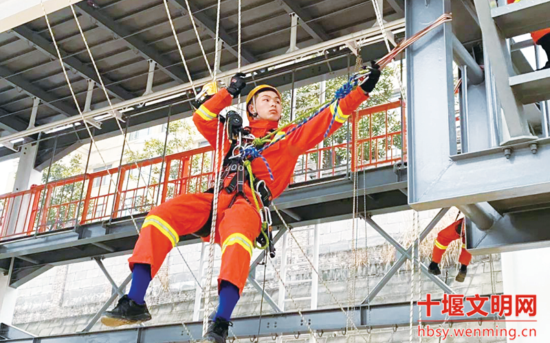 “练兵备战不怕多流汗。”这是裴志国经常挂在嘴边的一句话,而且练兵备战让他得到丰厚的回报。2016年,在市消防救援支队举行的实战化比武活动中,裴志国在高层建筑火灾扑救操中夺得第一名。在2018年执勤岗位练兵比武竞赛中,裴志国又一举夺得战士组总分第一名的好成绩。在去年举行的全国消防行业职业技能大赛中,裴志国参战。“绳索救援”是最难的一关,该项目的难点不仅在于27米的攀爬高度,还有到达顶端后3.5米的横向跨越距离。即使越过了这段距离,还有一大难关——在半空中,一名“被困人员”失去了意识,靠着绳索悬挂在半空,参赛队员需要尽快下滑到“被困人员”处并将其带至下方。比赛中,随着“啪”的一声枪响,裴志国快速打好绳结、解下挂钩,风一般向上攀爬,一气呵成救出悬挂在半空中的“被困人员”,如空中飞燕,现场观众大声惊呼,纷纷举起手机记录这精彩的瞬间。