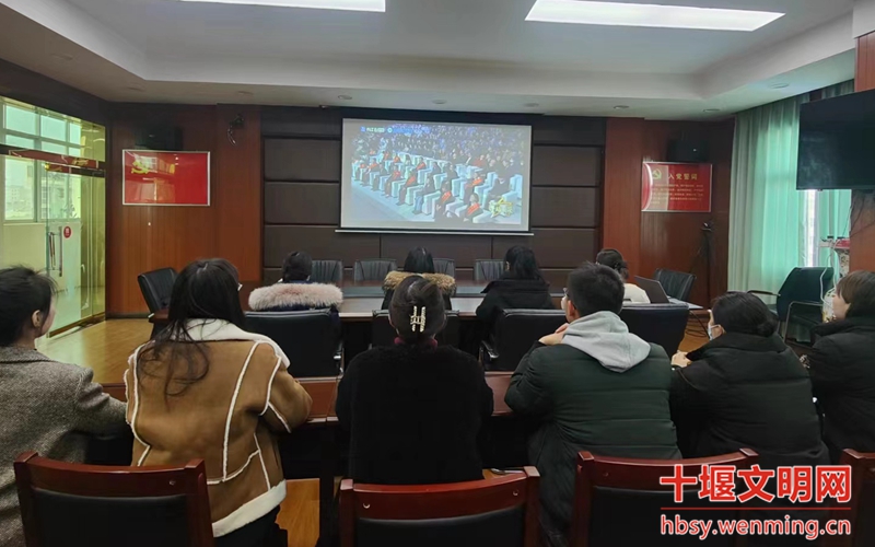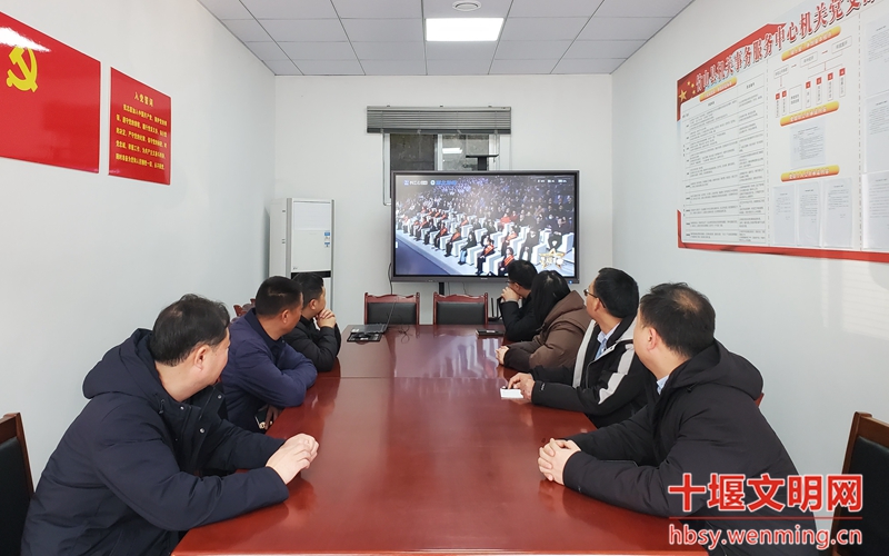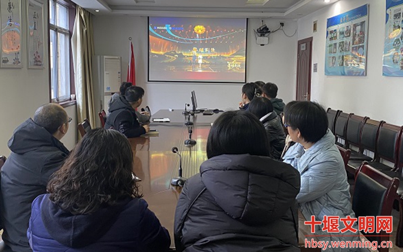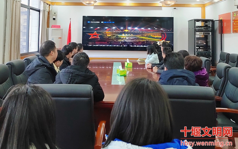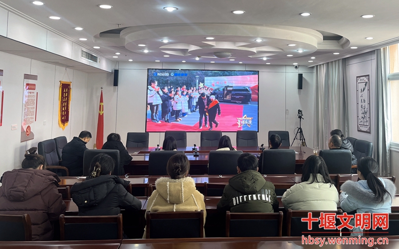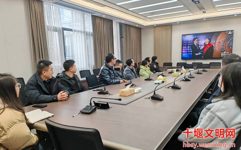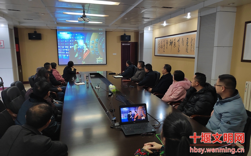 丹江口市发改局全体机关干部在会议室集中观看星耀荆楚——第九届湖北省道德模范致敬礼现场直播。
