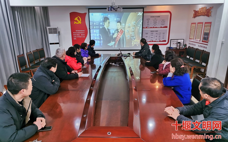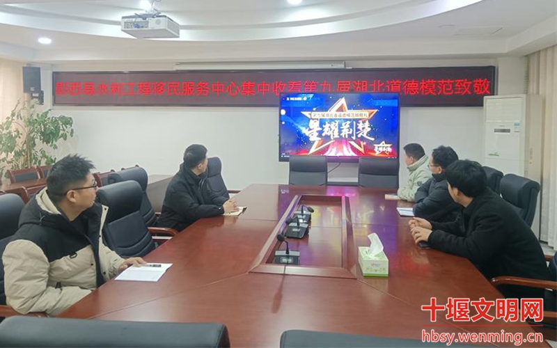 丹江口市水利工程移民服务中心组织单位职工在会议室观看星耀荆楚——第九届湖北省道德模范致敬礼现场直播,学习孝老爱亲、诚实守信道德模范精神。