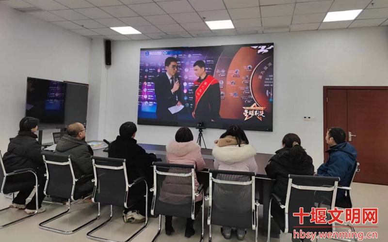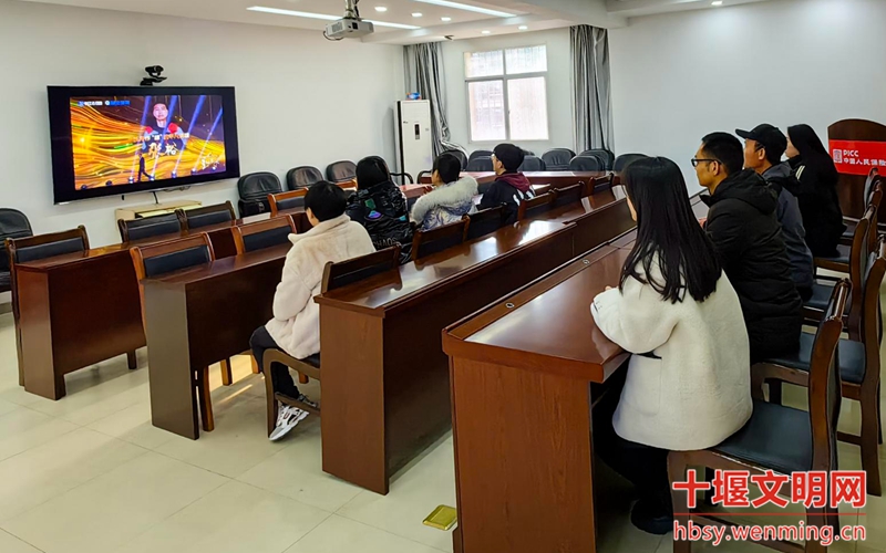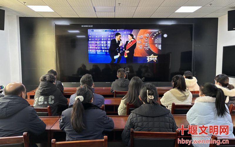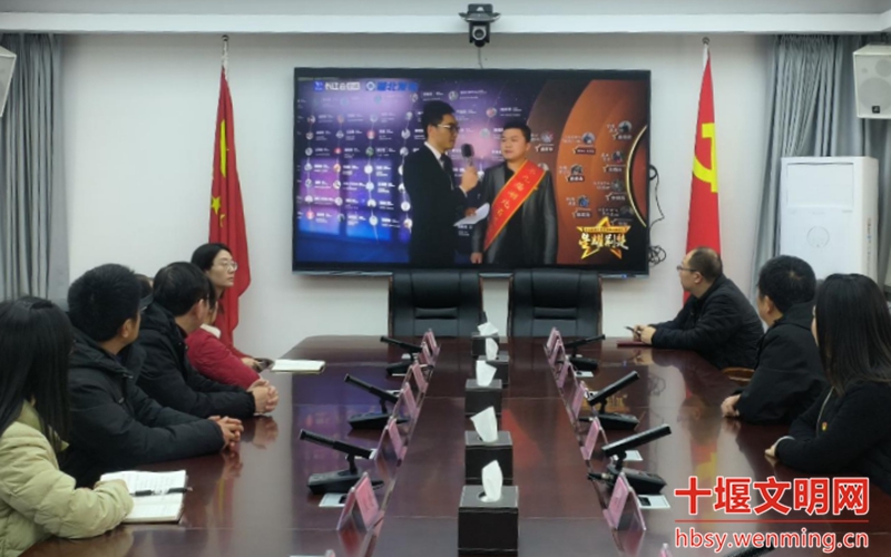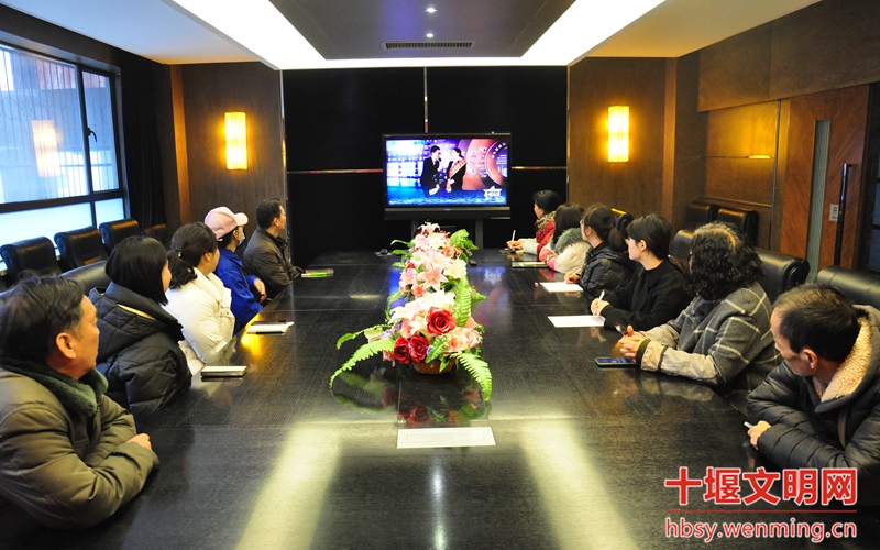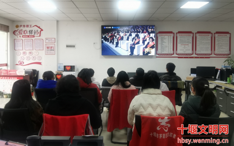 丹江口市总工会组织职工在会议室收看星耀荆楚——第九届湖北省道德模范致敬礼现场直播。