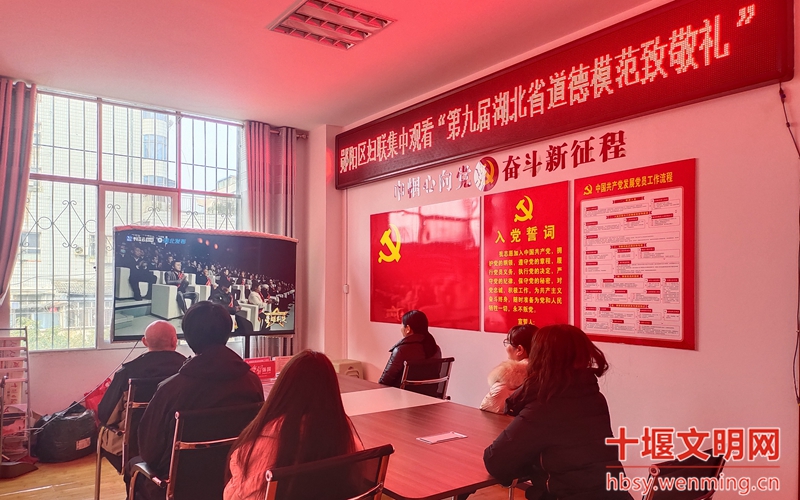 郧阳区妇联组织全体党员干部职工在党员活动室观看第九届湖北省道德模范致敬礼现场直播。大家一致表示,作为新时期的妇联干部,将以广大道德模范为榜样,努力加强道德修养,注重自我磨炼,勇于担负社会责任,在工作中讲好道德模范的感人故事,学习践行道德模范的高尚精神,加强对道德模范的关心关爱。